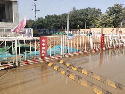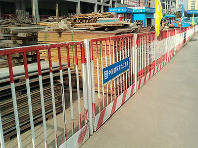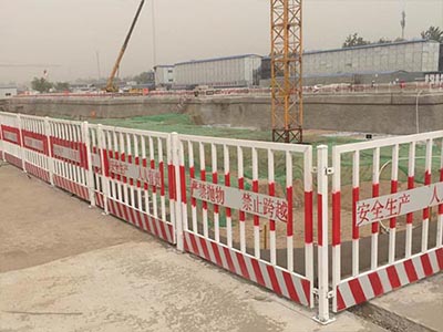 開挖深度超過2m的基坑周邊必須安裝防護(hù)欄?;臃雷o(hù)網(wǎng)安裝方便,可重復(fù)使用。開挖深度超過2m的基坑周邊必須安裝防護(hù)欄桿。
